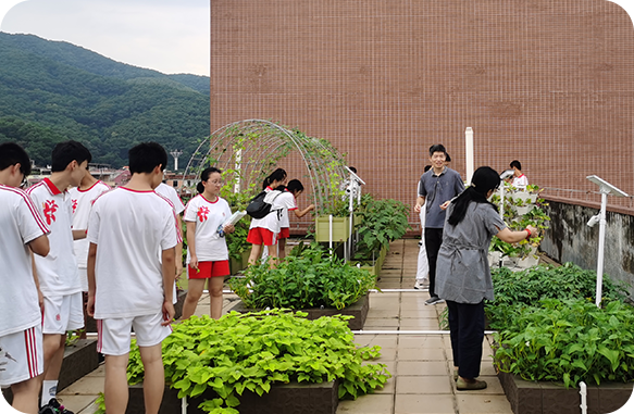 針對校園光照條件、排水系統(tǒng)、屋頂承重等進行全面評估,根據(jù)空間的特點和農(nóng)作物的生長需求,進行科學(xué)規(guī)劃、精細設(shè)計達到高效空間利用。